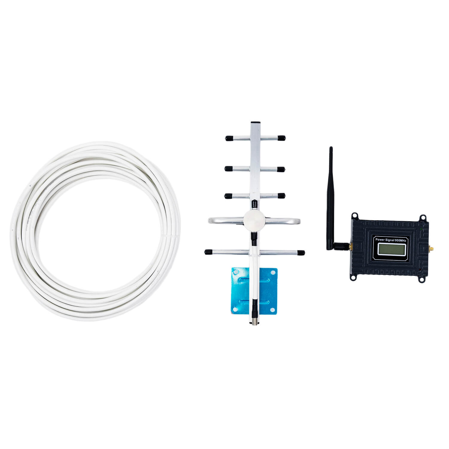 Усилитель сигнала сотовой связи Power Signal 900 MHz (для 2G) 65 dBi, кабель 10 м., комплект используется для улучшения качества сигнала мобильной связи. Прибор работает на частоте 900 Мгц, обеспечивает выходное усиление до 65 дБ. Задержка передачи данных не превышает 0.2 с. Устройство применяется в жилых и производственных помещениях, в которых наблюдаются проблемы с сетью из-за большой удаленности объекта от базовой вышки. Комплект состоит из блока усилителя, внутренней и внешней антенн и соединительного кабеля.